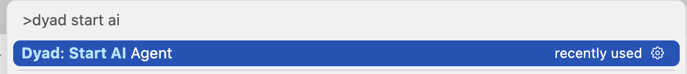 Start the agent via the VS Code command palette (Shift+Ctrl+P -> Dyad: Start AI Agent).